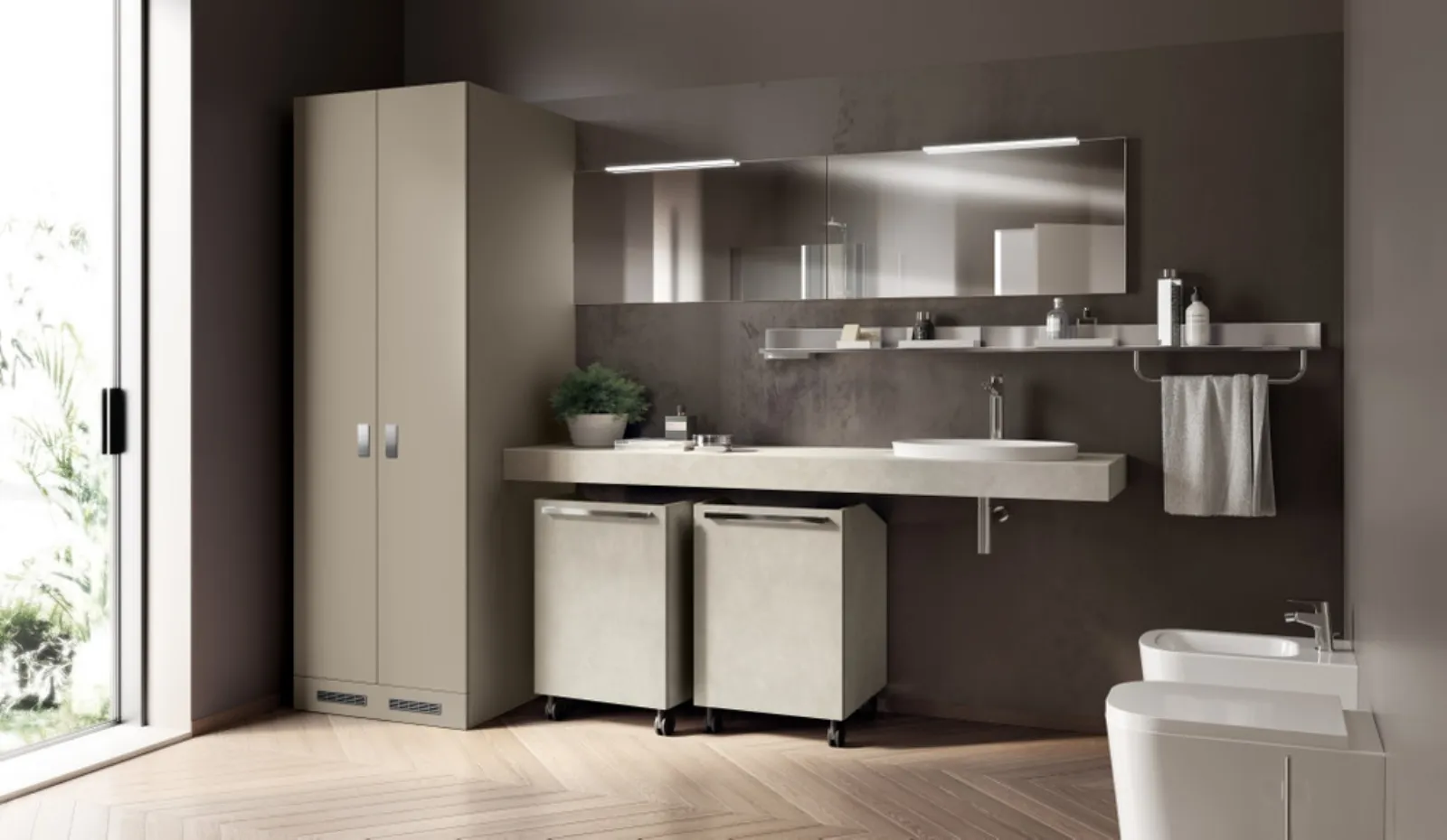 Il modello Mobile da Bagno Laundry Space Aquo Visone di Scavolini Bathrooms in laccato opaco appartiene alla vasta serie di arredi per la sala da bagno della marca, sempre di alto valore estetico. In showroom potrai visionare in prima persona le più esclusive composizioni del rinomato brand: ti attendiamo per arredare insieme il tuo bagno. Finiture innovative e una ricca varietà cromatica assicurano una progettualità unica e materiali durevoli che resistano a diversificate sostanze. Esteticamente apprezzabile e funzionale in ogni stanza da bagno, un modello in laccato opaco moderno come quello nell'immagine risolverà le tue problematiche abitative di ogni genere. Con le proposte che presentiamo ti garantirai arredi fatti a regola d'arte e alla moda anche per il bagno, che va progettato attentamente, con praticità e design.