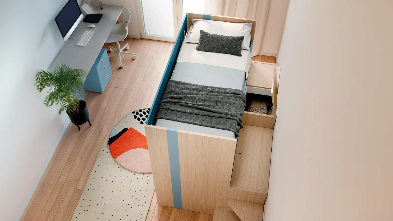 Vieni nel nostro showroom e potrai toccare con mano tutte le più esclusive composizioni d'arredo con letti a castello moderne di Nidi per i più giovani. Nidi asseconda il gusto dei giovani e i desideri degli adulti con le sue Camerette moderne con letti a castello, ideali per esigenze di ogni genere. Con una composizione arredativa Nidi, potrai completare con funzionalità e design l'ambiente dove i tuoi figli passano gli anni più importanti della vita. La Cameretta con letti a castello Lila di Nidi in melaminico è un ambiente articolato da progettare con cura, unendo vari elementi accessori su misura.