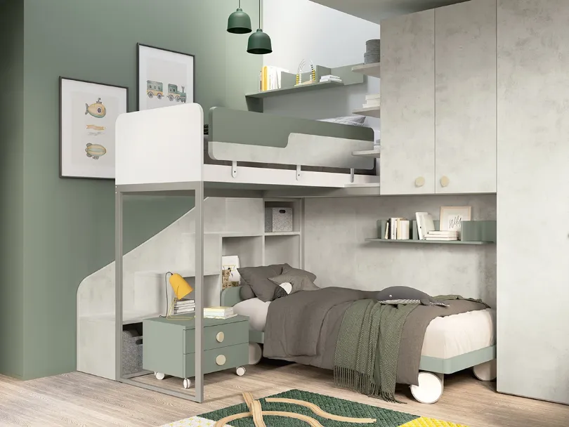 Colombini Casa soddisfa il gusto dei bambini e le esigenze dei genitori con le sue Camerette moderne a soppalco, ideali per necessità di ogni genere. Vieni nel nostro showroom e potrai visionare in prima persona tutte le più esclusive composizioni d'arredo a soppalco moderne di Colombini Casa per i più piccoli. Con una composizione arredativa Colombini Casa, potrai ultimare con praticità e design l'ambiente in cui i tuoi bambini trascorrono gli anni importanti della vita. Colori di tendenza e progetti articolati eccellenti connotano le più esclusive proposte del noto e rinomato brand che presentiamo nel nostro showroom. La Cameretta Golf K49 di Colombini Casa in melaminico è un ambiente complesso da organizzare con cura, mixando differenti elementi accessori su misura.