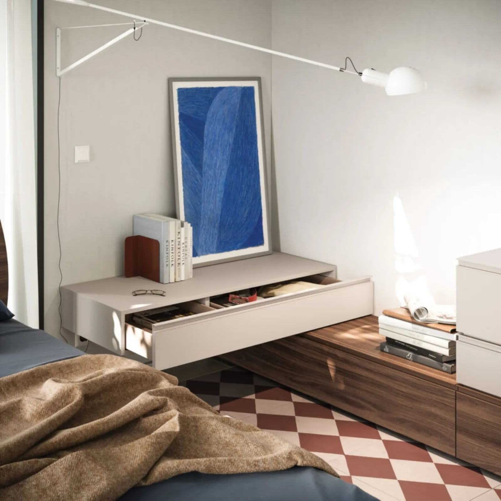 La zona del riposo include anche i Comodini: contenitori utilissimi che offrono l'opportunità di sistemare piccole cose e avere a disposizione superfici per appoggiare multiuso. Ottimizza i tuoi locali scegliendo composizioni di oggetti abbinati oppure crea esteticamente gradevoli abbinamenti di stile e cromie grazie al catalogo di mobili ed elementi accessori per la zona del riposo che proponiamo, come il modello in melaminico mostrato in foto, anche realizzabili su misura. Con i nostri gruppi notte moderni del brand Orme, specialista dell’Arredamento Casa per la zona del riposo, potrai ricreare la zona notte che hai sempre sognato.