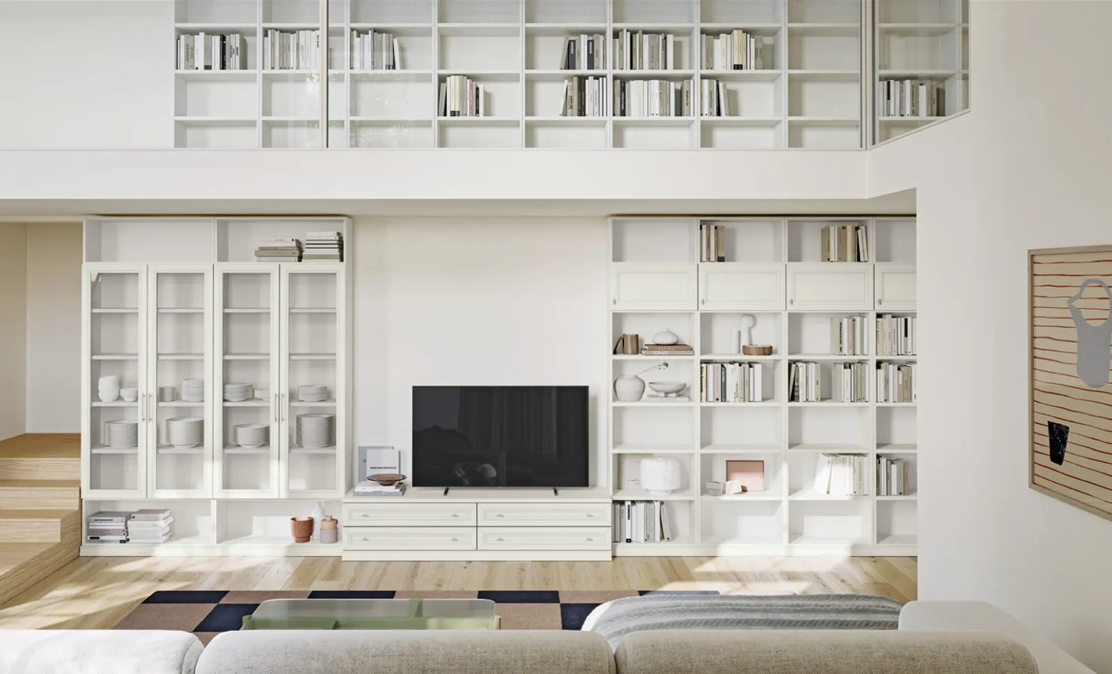 Le Librerie classiche sono sempre molto gradite per predisporre il soggiorno e le pareti, unendo ottimamente doti di praticità e design. La Libreria Arcadia AS001 di Colombini Casa in foto, nella variante in melaminico, è davvero versatile e funzionale, robusta e durevole, nonché personalizzabile seguendo le più personali esigenze abitative. Le Librerie componibili Colombini Casa sono disponibili in diverse forme: ad angolo, in linea, sospese e realizzabili su misura con molteplici accessori, mensole e vani. Il soggiorno è, in assoluto, la zona della casa dove ci si dedica al relax ogni giorno, discorrendo con familiari e amici, riposando in solitudine nonché guardando la televisione.