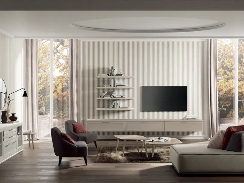 La Parete Attrezzata Arcadia AS009 di Colombini Casa diventa protagonista in stanze di ogni tipo grazie ai suoi componenti modulari e alla possibilità di selezionare texture, materiali, tonalità, forme e molto altro. Le Pareti Attrezzate classiche offrono l'opportunità di creare differenti atmosfere nel living, liberando spazio e ottimizzando ogni angolo. Scopri la nostra linea di arredi per il soggiorno dell'azienda Colombini Casa e potrai arredare i tuoi spazi con un design unico e le doti contenitive di cui hai bisogno.