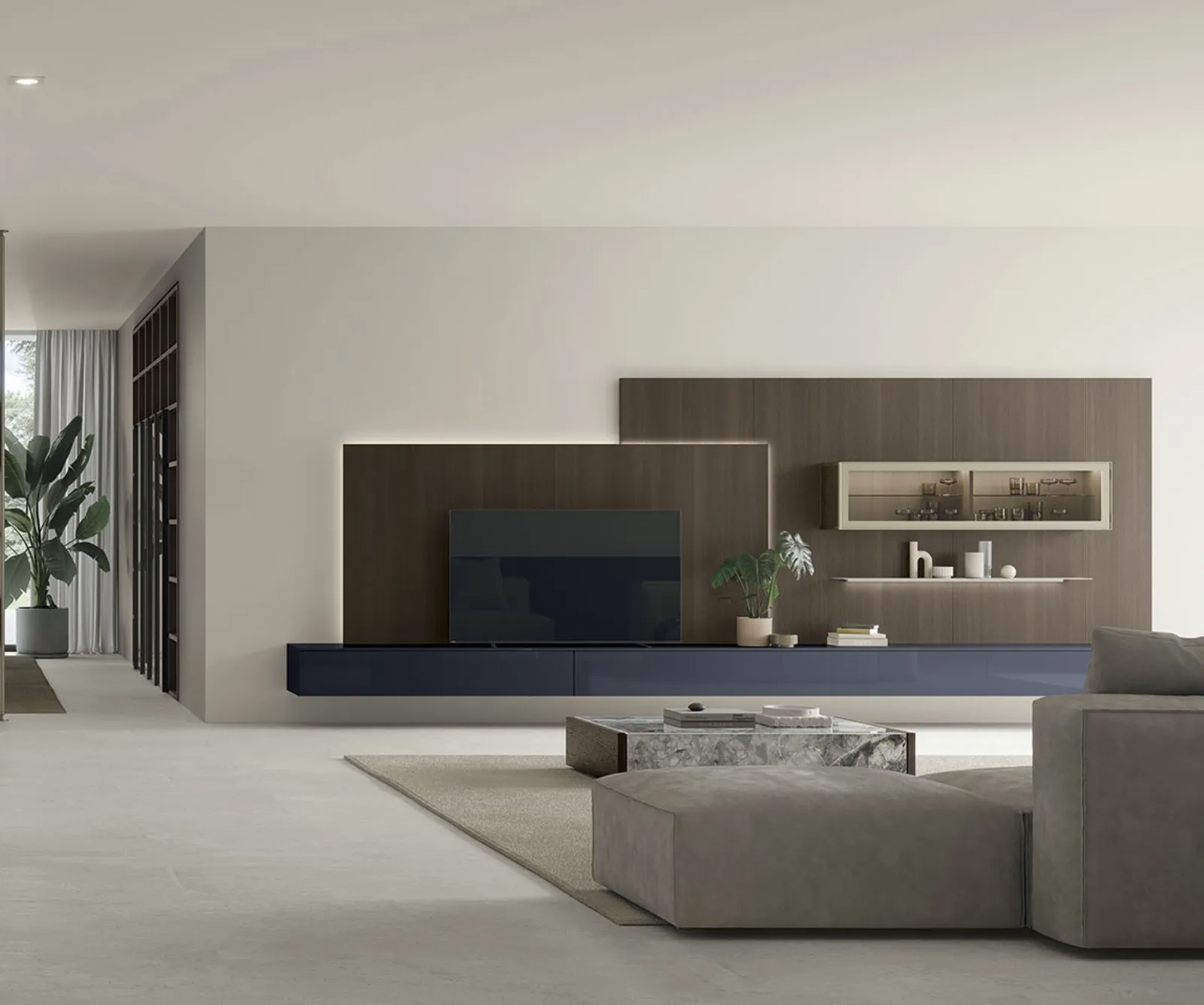 Attraverso un gioco dinamico di accostamenti fra elementi a giorno o vani chiusi, le Pareti Attrezzate moderne arredano il soggiorno usufruendo al meglio di ogni spazio. Questa parete attrezzata è una delle soluzioni della marca e ti permetterà di allestire il living secondo le più personali esigenze abitative. Le Pareti Attrezzate hanno assunto un posto di primo piano nella zona giorno delle nostre case: sono mobili plurifunzionali e salvaspazio sempre realizzabili su misura.
