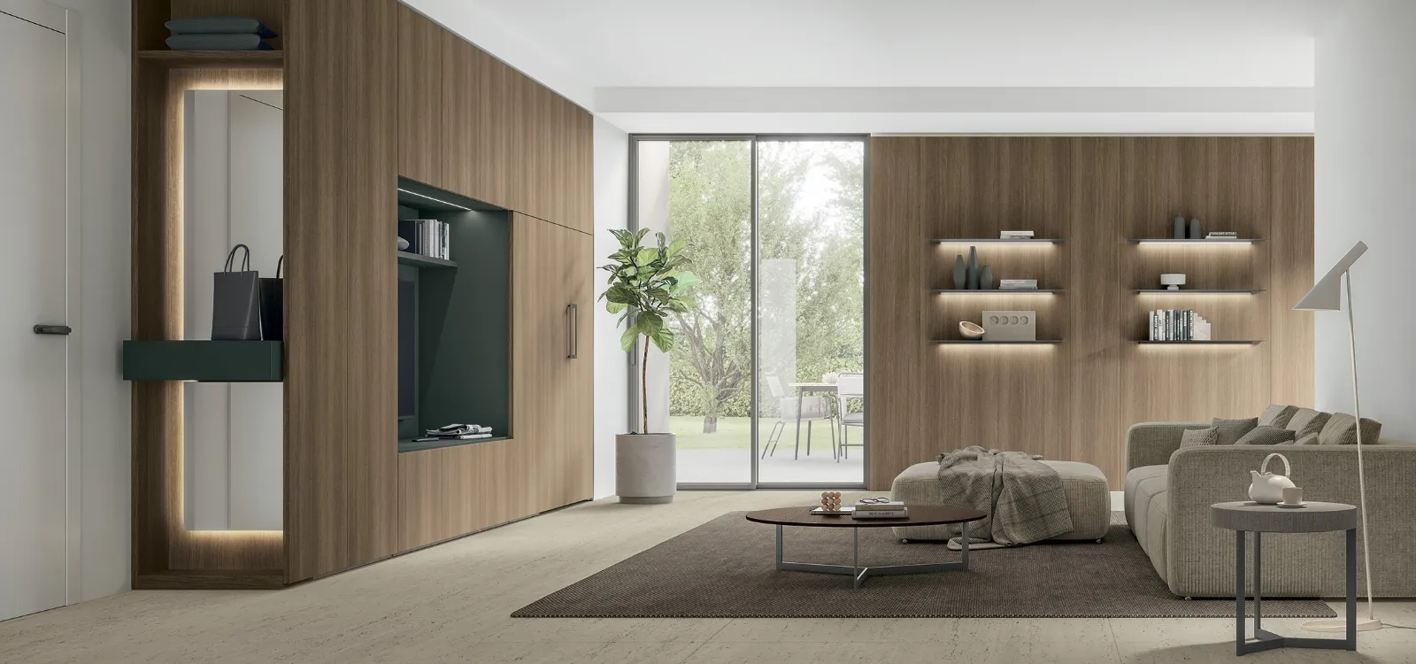 I mobili soggiorno in melaminico dalle linee moderne come il modello nella fotografia sono davvero polivalenti e capaci di ammobiliare il living valorizzando ogni angolo. Tomasella propone originali modelli di mobili soggiorno, diversi per stile e conformazioni, texture e accessori: scopri nel nostro showroom l'Arredamento Casa dei migliori produttori. Visto che il soggiorno deve essere uno spazio agevole e di grande valore estetico, sono molto utili alcuni mobili belli e funzionali come le Pareti Attrezzate. Lasciati affascinare da una ricca gamma di mobili per la zona giorno e potrai trovare la parete attrezzata che fa al caso tuo.